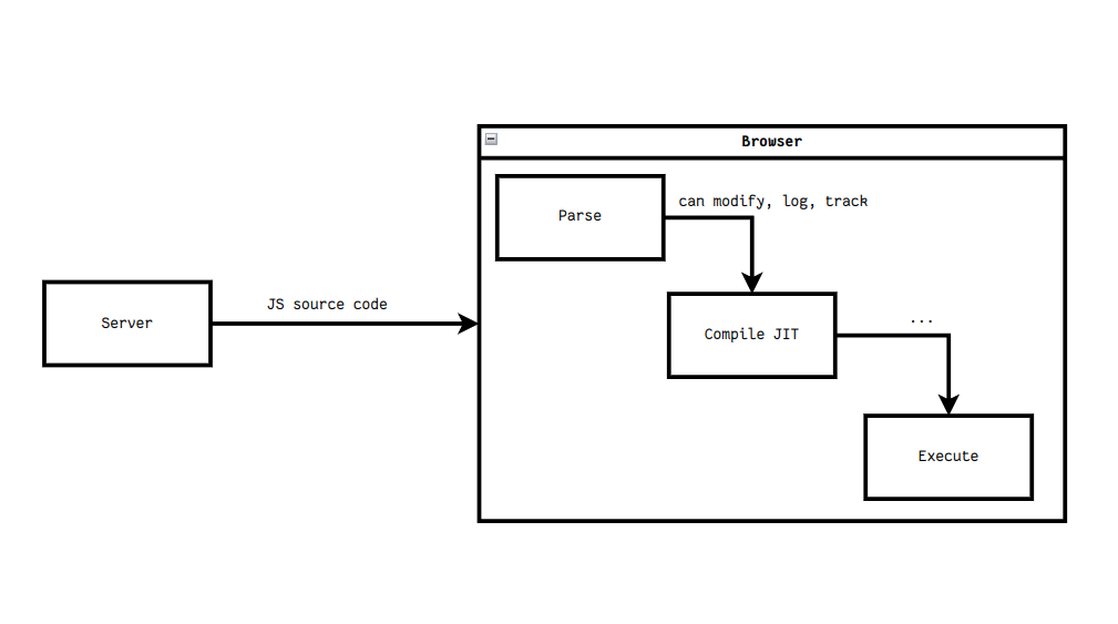 Execution code is delivered as simple text and interpreted by browsers at runtime.